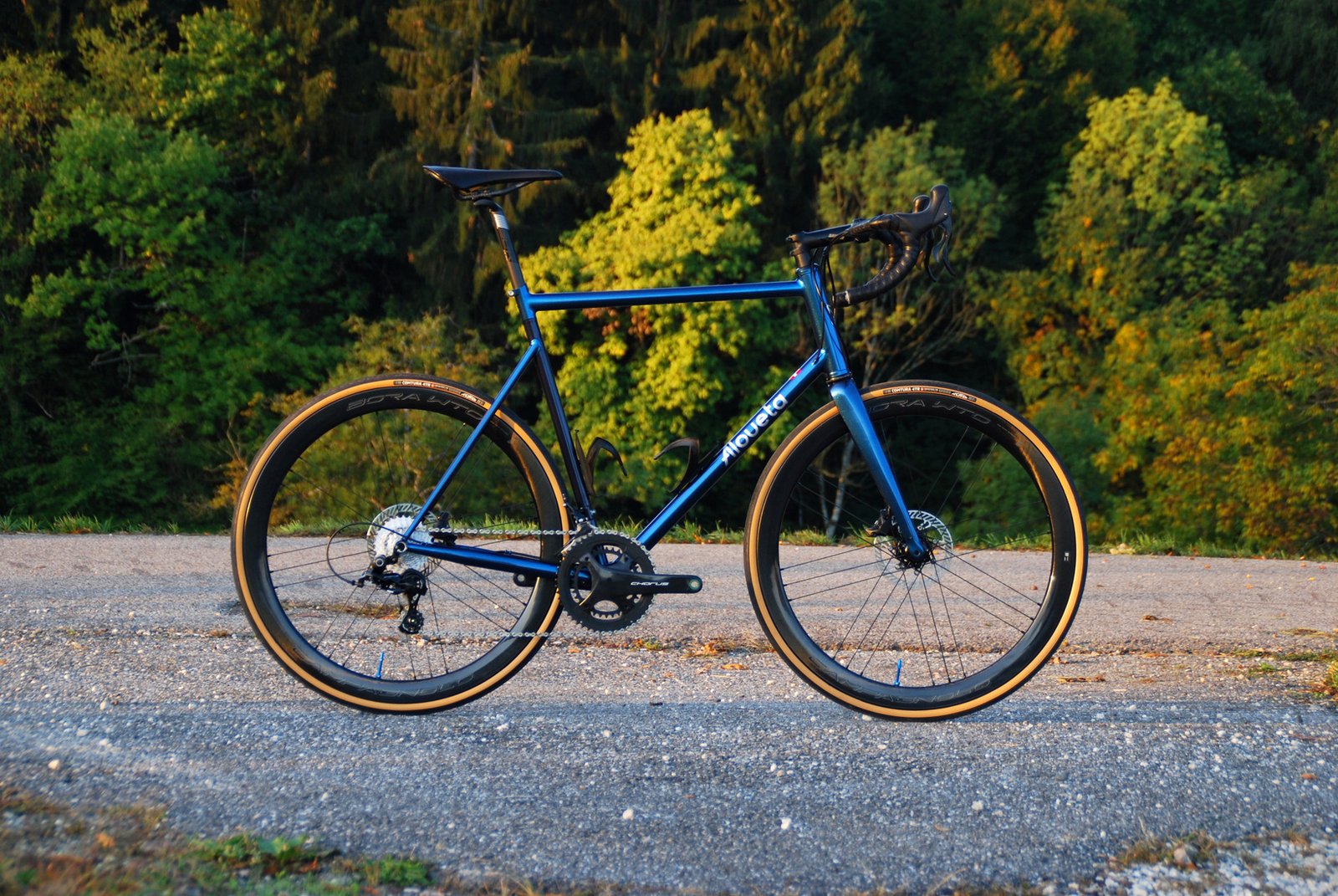 Lors de la conception, nous avons fais le choix de relier les haubans au tube de selle légèrement plus bas que d’ordinaire. En plus d’apporter une touche esthétique plus intéressante au vélo, les sensations à chaque coup de pédale sont plus dynamiques. Grand habitué des produits Campagnolo, Daniel a opté pour un groupe Chorus à 12 vitesses et de super roues Bora WTO. La technologie cône/cuvette maîtrisée à merveille par la firme Italienne, apporte une fluidité de roulement incomparable.